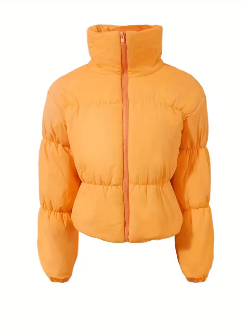 Quilted Zip-Up Padded High Collar Jacket for Women